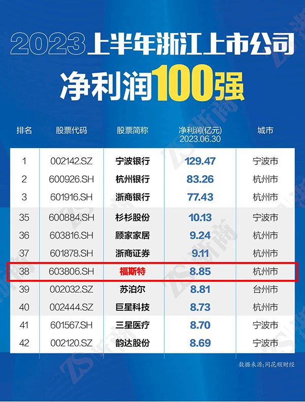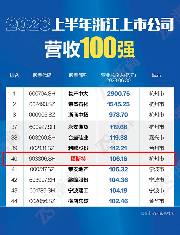 2023上半年度營(yíng)收超百億,福斯特位列浙江上市公司榜單前40名!