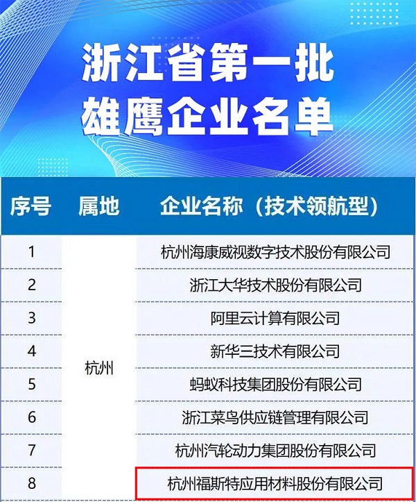 近日,浙江省經濟和信息化廳公布了浙江省首批雄鷹企業名單,福斯特成功獲評首批技術領航型雄鷹企業!
