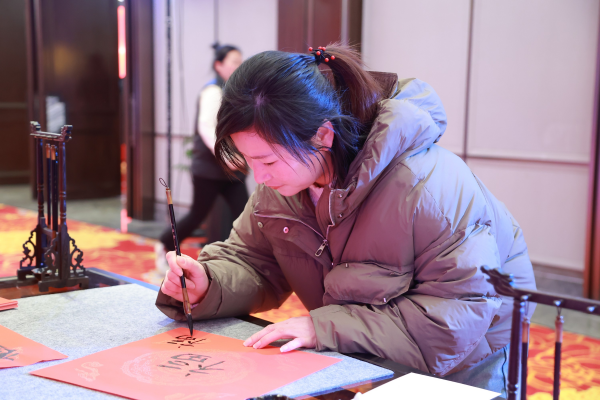 晚上,福斯特“崢嶸歷程三十載,同心同德創(chuàng)未來(lái)”三十周年慶典正式拉開帷幕。員工在場(chǎng)外互動(dòng)區(qū)域集章打卡,參與寫福字、投壺、制作明信片等小游戲,玩得不亦樂乎,共同分享喜悅與歡樂。